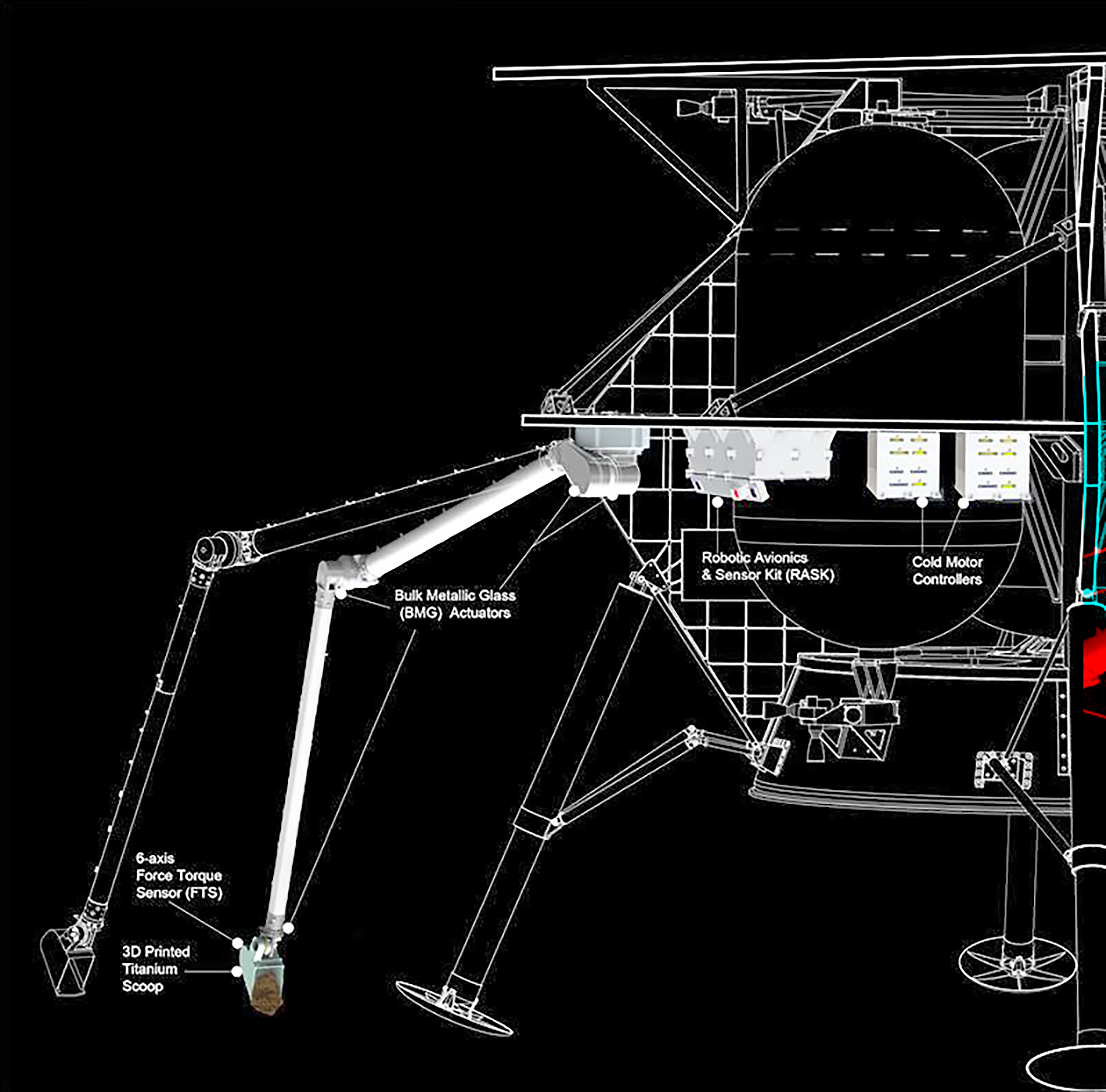 Der Roboterarm, der für eine Mondlandefähre konzipiert ist, nutzt eine hochleistungsfähige Smartphone-Verarbeitungstechnologie, die für den Mars-Helikopter Ingenuity verwendet wird, und kann eine Vielzahl von Aufgaben bei extrem kalten Temperaturen ohne Heizung ausführen. Dazu gehören Dinge wie das Aufnehmen und Analysieren von Mondboden, das Einsetzen von Instrumenten und das Aufnehmen von Fotos von der Umgebung des Landers. Derzeitige Roboterarme für Mondlandegeräte benötigen Heizungen, damit die Zahnräder im Inneren des Arms bei den extrem kalten Temperaturen in der Mondnacht nicht überlastet werden und brechen. COLDArm verfügt über spezielle Getriebe und Motorsteuerungen, die bei extremen Temperaturen ohne Heizung auskommen und so Energie und Masse für die Mission einsparen.