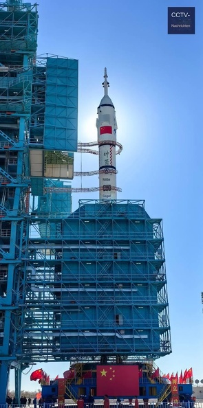 Hier sind die Tore mit den Arbeitsplattformen und auch die Versorgungsarme noch von der Rakete weggeschwenkt.